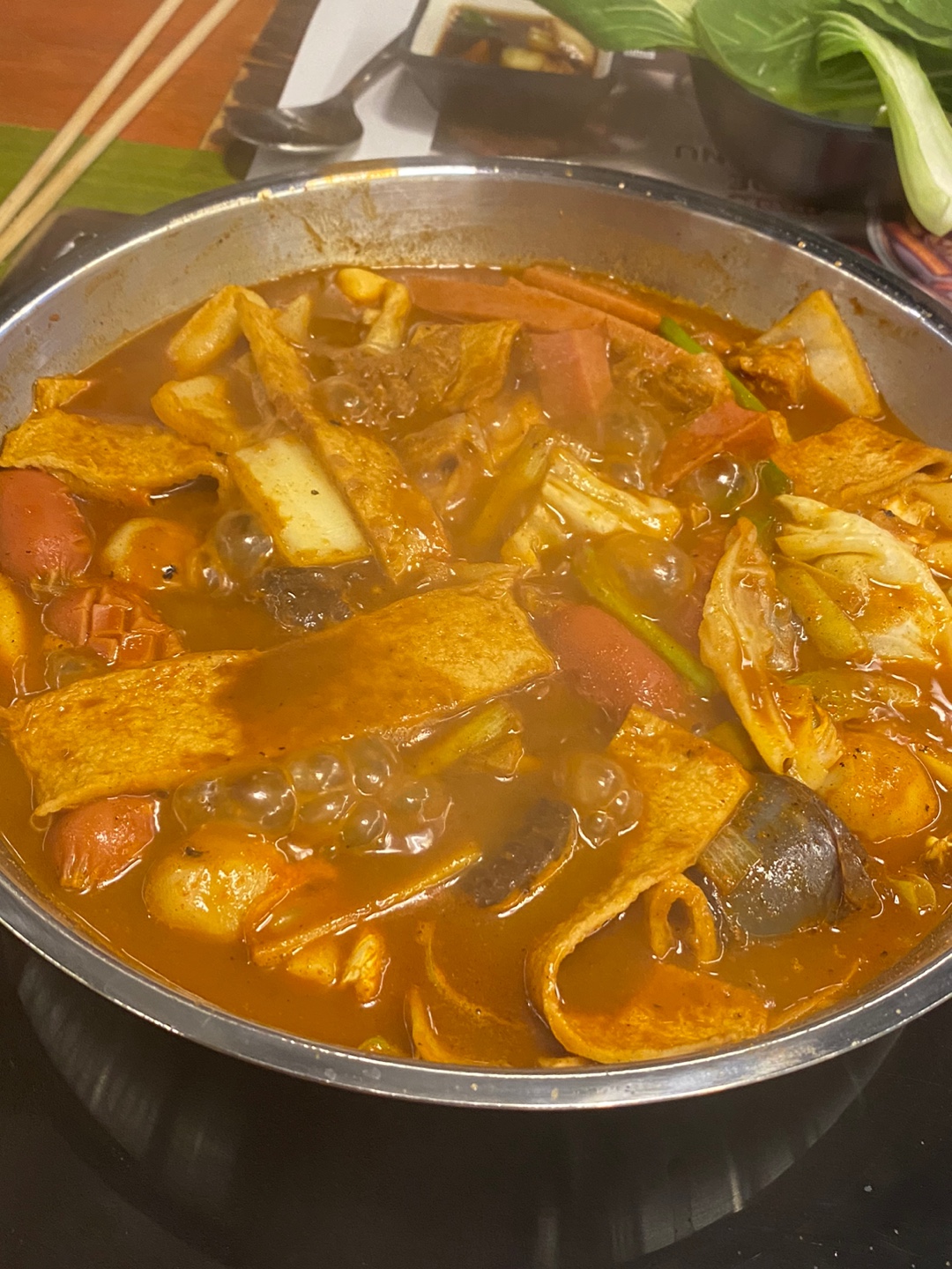다양한 종류의 떡이 있었는데 밀떡이 먹고 싶어서 넣어봤고 소스도 많았는데 그중에 가장 매운 소스로 만들어봤습니다. 할매떡볶이 같은 맛이었고 각종 야채, 어묵, 옹심이, 소시지 등과 같이 넣고 끓여서 먹어봤는데 소스 자체가 괜찮아서 맛있었습니다.