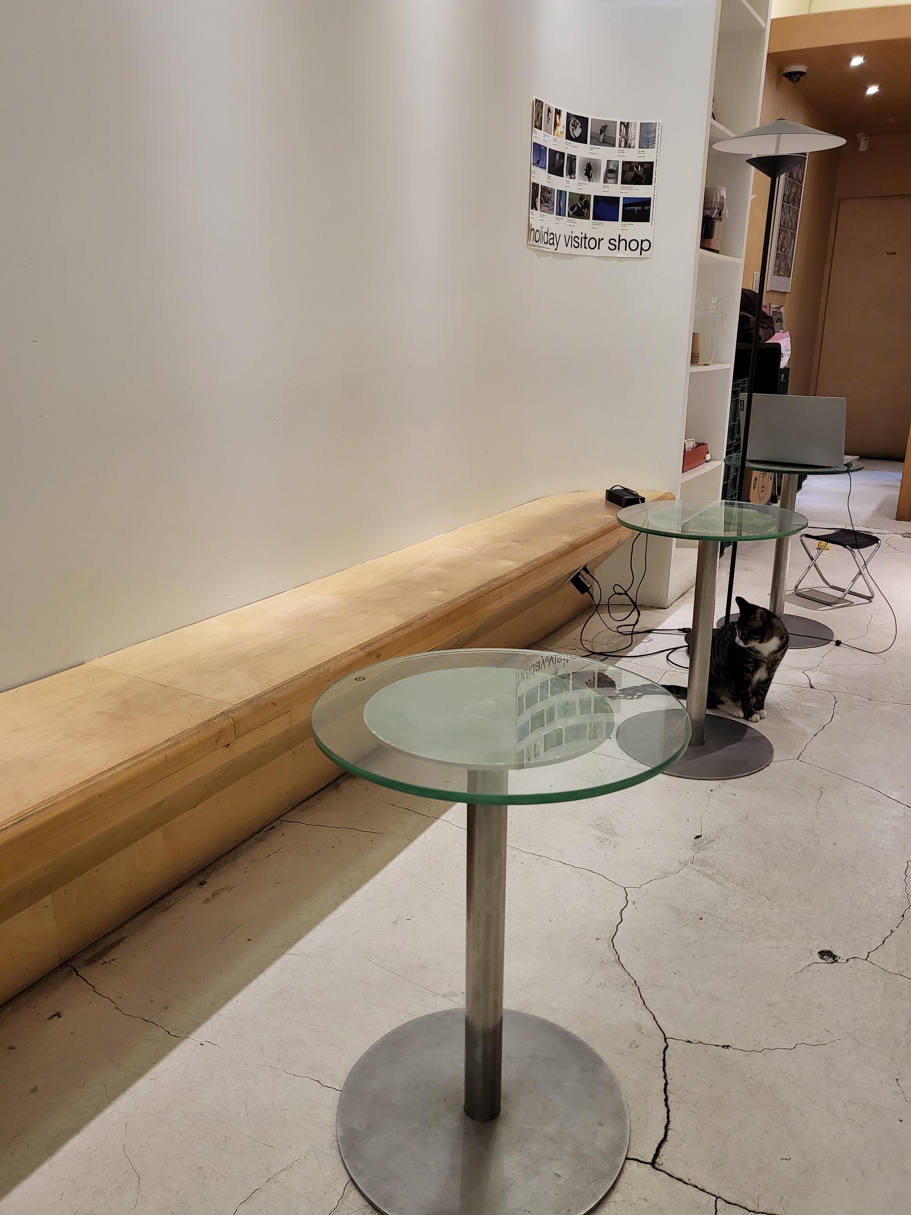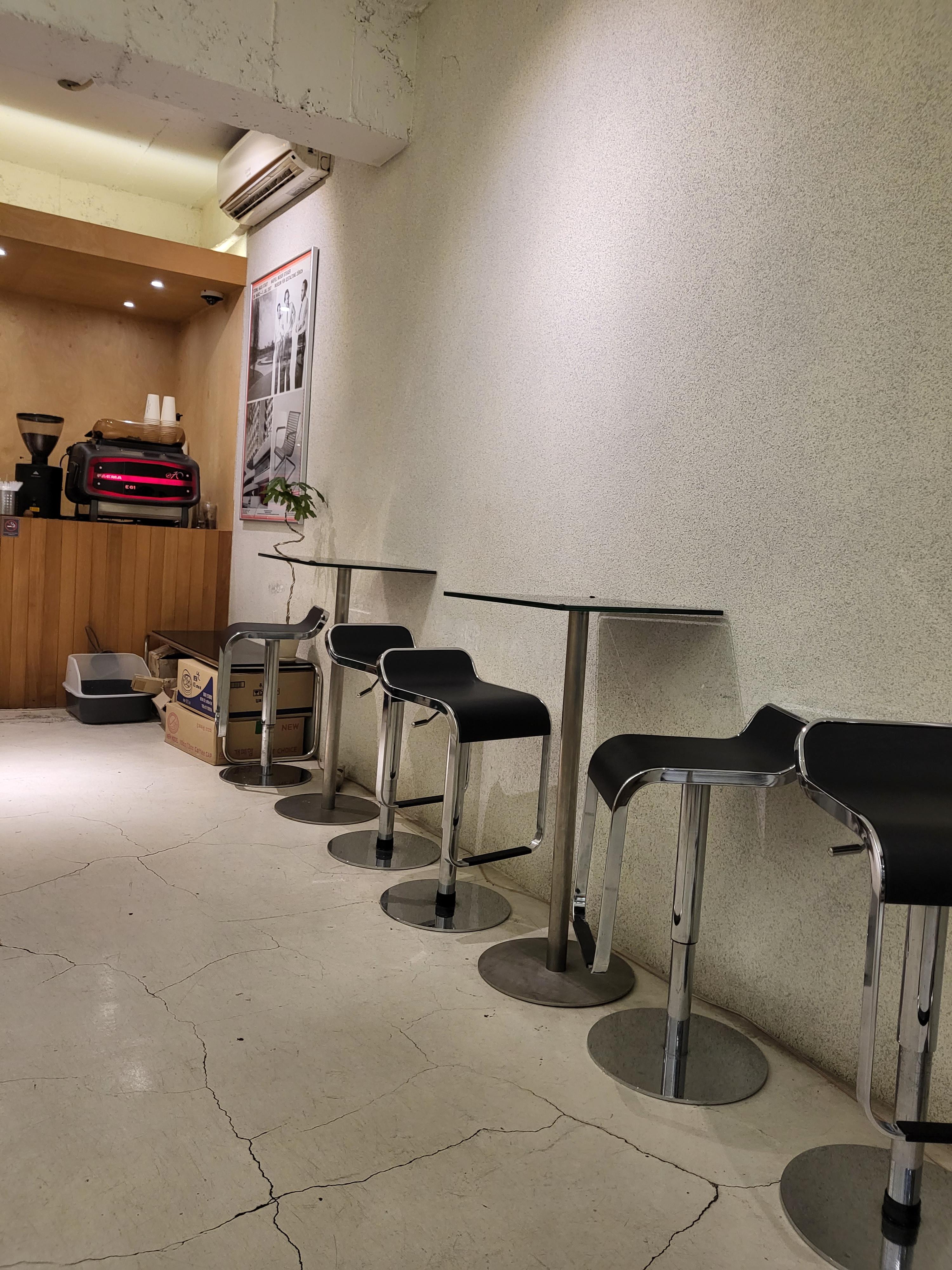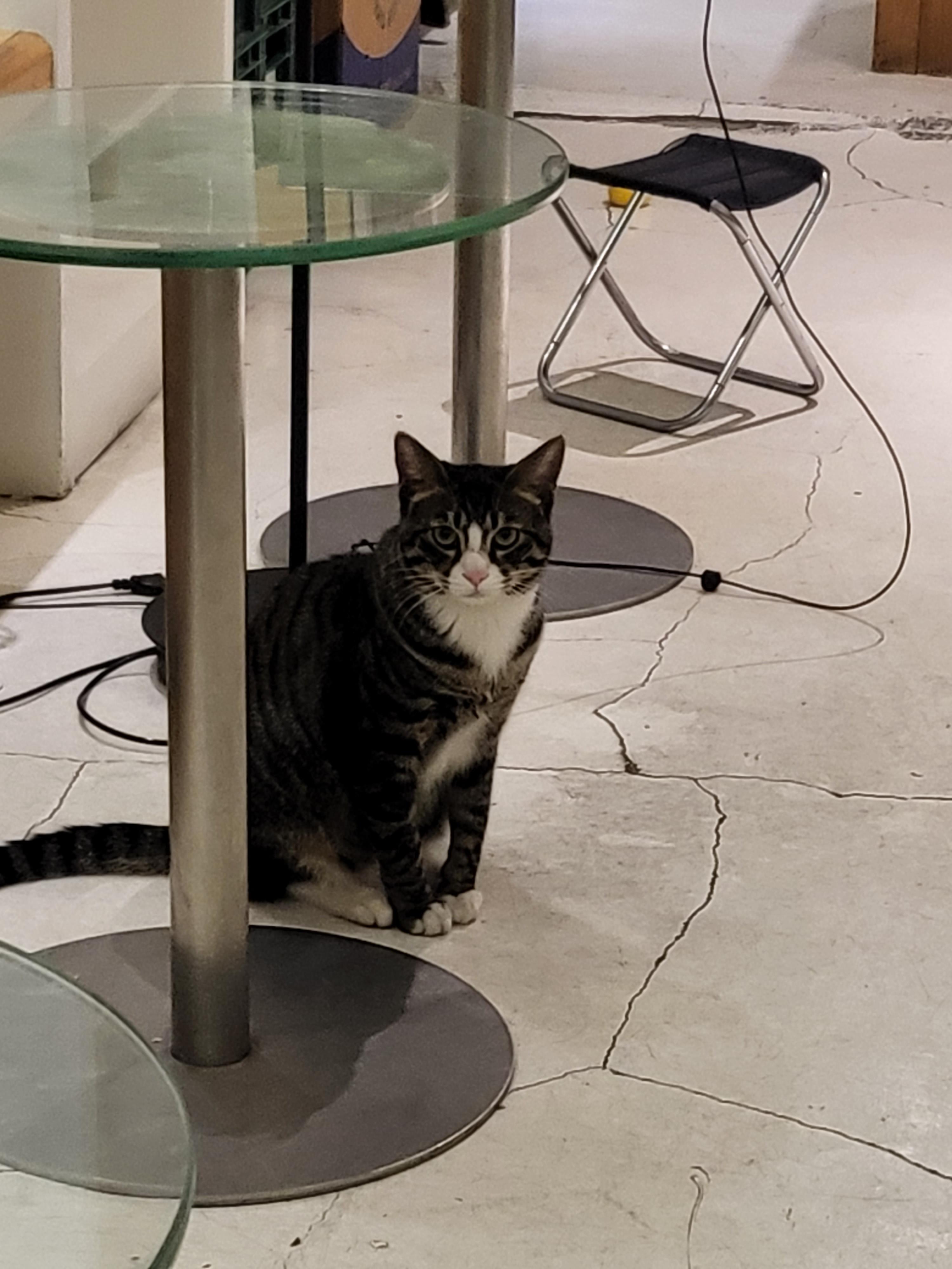 고양이가 있는 카페라고 했었는데 처음 갔을 때는 안 보여서 주변을 봤더니 안쪽에서 슬그머니 나와서 이쪽저쪽을 보고 있었습니다. 사람을 싫어하진 않는데 손길을 반기는 듯한 느낌은 아니었고 그냥 보고만 있어도 귀여웠습니다.