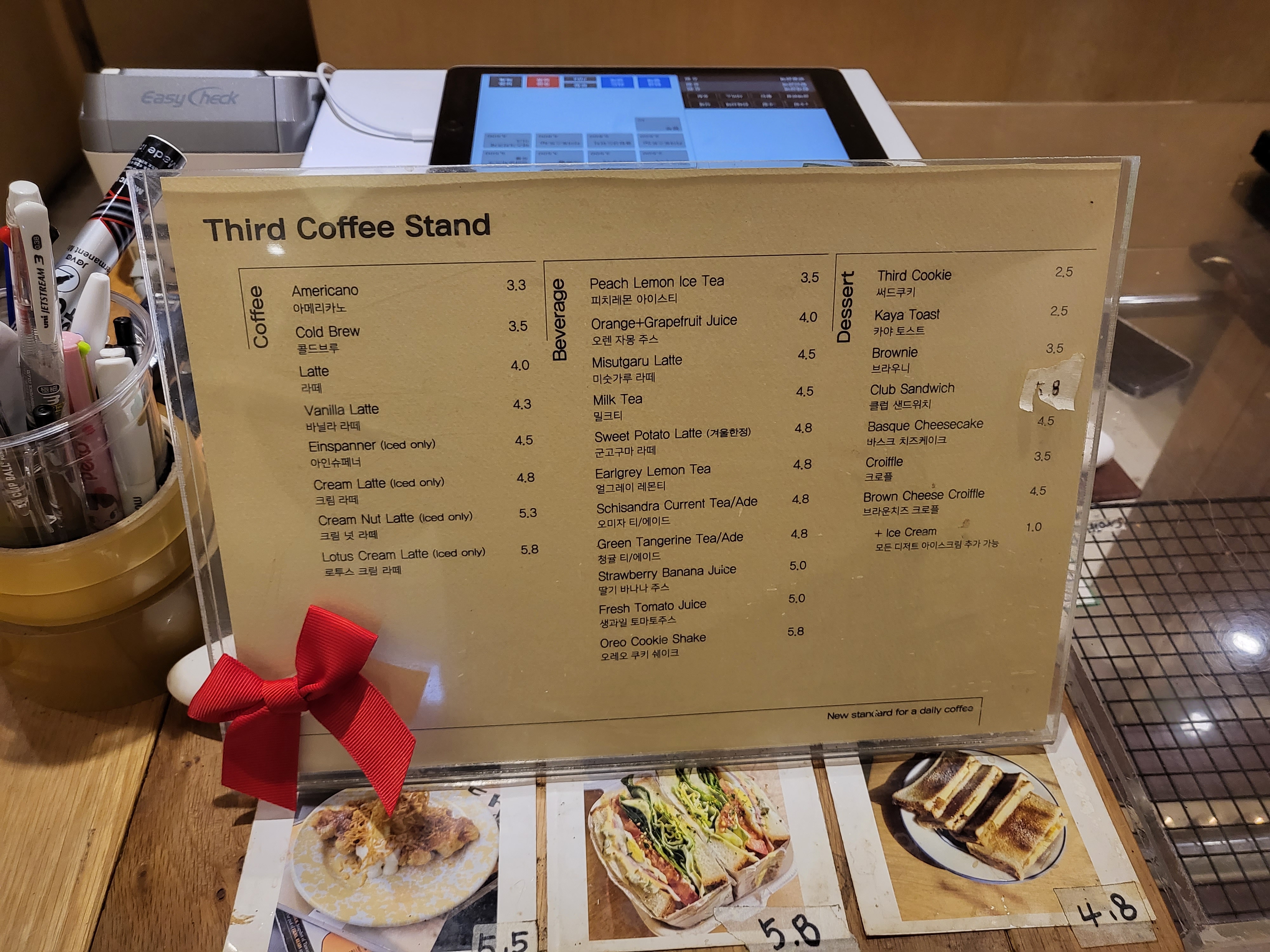 대구 반월당 카페 써드커피스탠드 메뉴판도 한번 찍어봤었는데 다양한 음료들이 많았고 밀크티는 연해서 뭔가 부족한 맛이었는데 피치레몬 아이스티는 상큼하고 맛있었습니다. 다음에 재방문하면 다른 음료도 먹어볼 생각이고 쿠폰도 있어서 만들어뒀습니다.