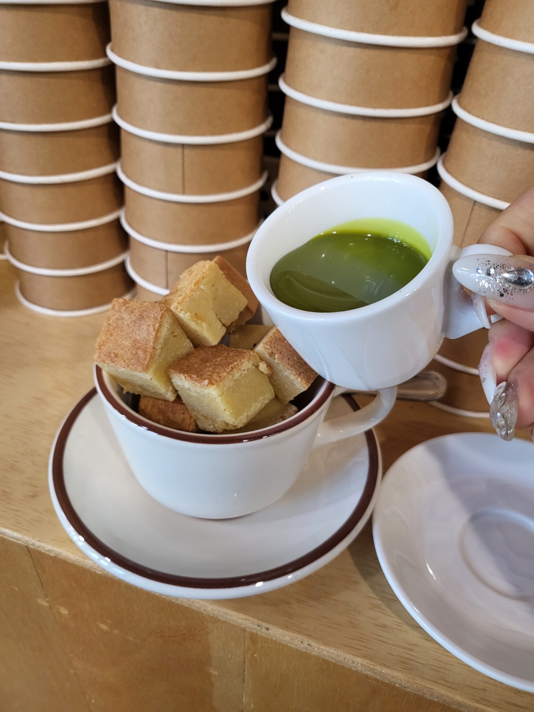 후기를 찾아봤을 때 피스타치오 디핑 소스를 많이 드시는 것 같아서 골라봤었는데 특유의 향과 맛이 너무 진해서 호불호가 있는 맛이었습니다. 저는 개인 적으러 카라멜 디핑소스가 괜찮을 것 같다는 생각이 들었고 처음 한번 찍어먹고는 그냥 브라우니만 먹었습니다.