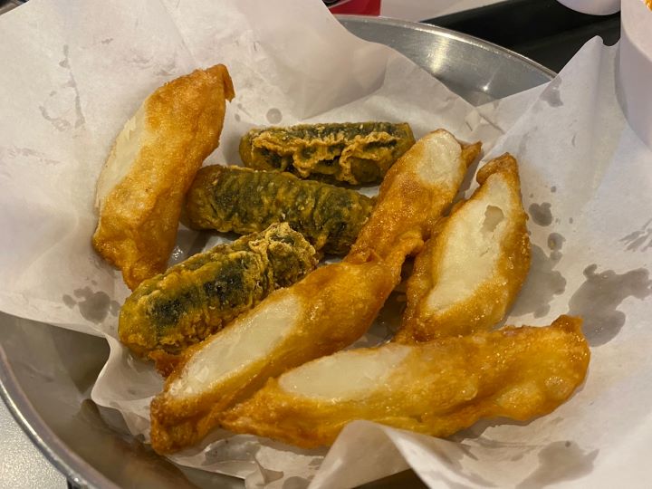 신전떡볶이 튀김종류는 만두, 어묵, 단호박, 치즈스틱, 김말이, 코추 튀김, 치즈볼 등 다양하게 있는데 그날 먹고 싶은 게 다르기 때문에 항상 다르게 시켜서 먹는 것 같고 언제 먹어도 겉바속촉으로 맛있게 먹을 수 있는 것 같습니다. 그냥 바삭하게 먹는 것도 좋지만 신전떡볶이에 살짝 찍어 먹거나 푹 담가서 먹는 것도 괜찮은 것 같습니다.