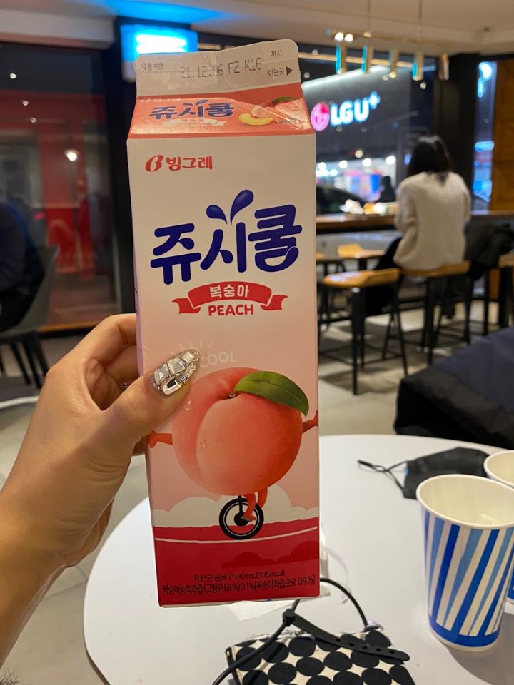 신전떡볶이 먹을 때 같이 마시면 좋은 음료로는 보통 쥬시쿨을 주문하는데 자두, 복숭아, 파인애플 3가지맛이 있는데 그중에서는 자두맛을 가장 좋아하고 신전떡볶이 매운맛 먹을 때 가장 잘 맞는 것 같습니다. 음료, 잔, 얼음, 그릇, 수저 등 셀프로 이용하면 되기 때문에 카운터에 계산을 먼저 하고 들고 오면 되는 시스템입니다.